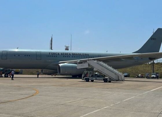 A aeronave KC-30, da Força Aérea Brasileira (FAB), pousou na noite deste sábado (25), no Aeroporto Internacional de Confins, em Belo…