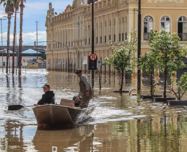 Chuvas intensas em 2024 fecharam o comércio e escolas no Rio Grande do Sul – Gustavo Mansur/Palácio Piratini