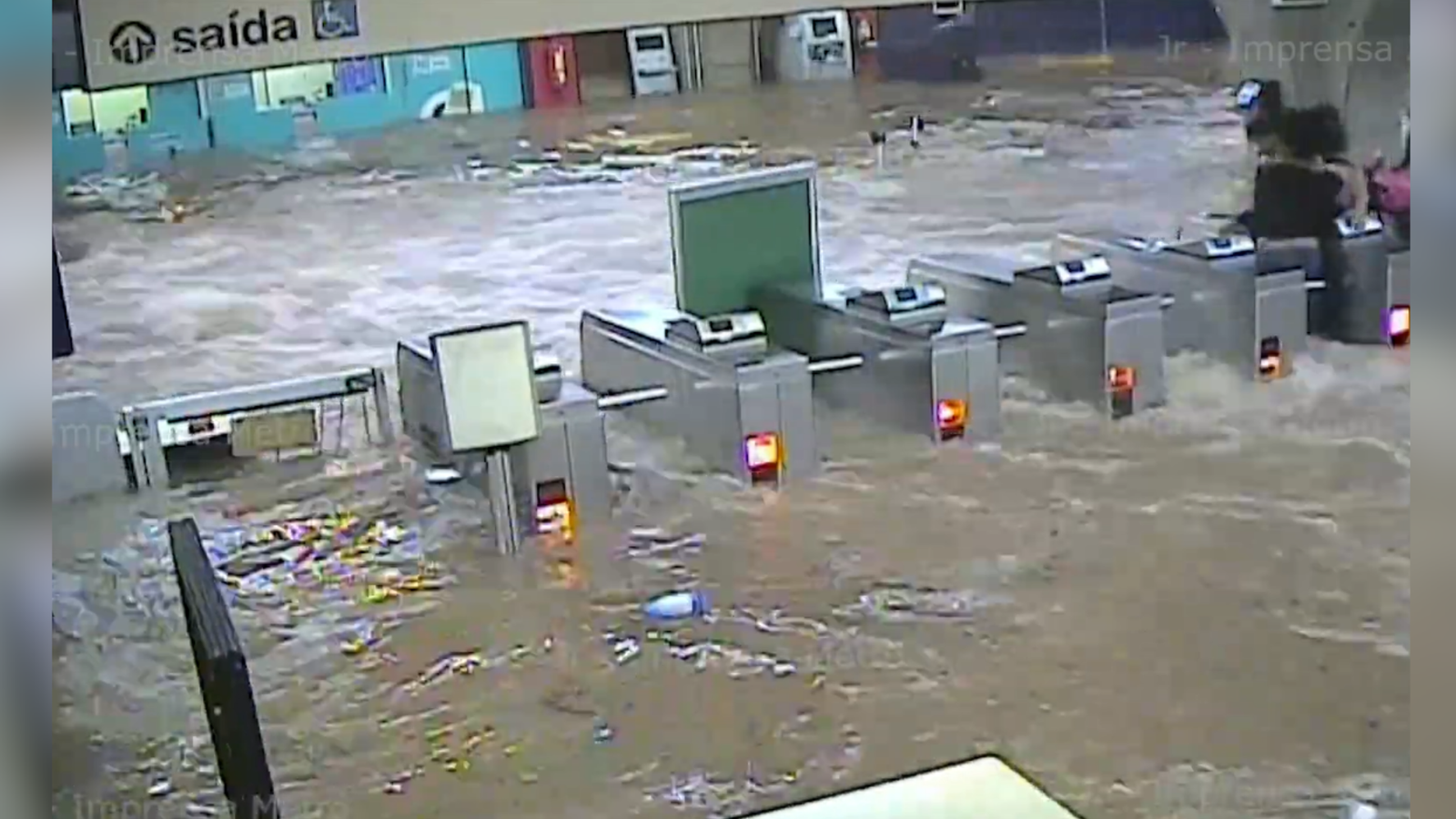 Na filmagem, é possível ver que em questão de minutos a estação, que estava seca, fica tomada pela água, obrigando os passageiros a deixar o local.