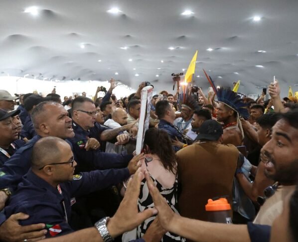 As entradas e saídas da Zona Azul, área que concentra as negociações da COP30, foram fechadas no começo da noite desta terça-feira (11) depois que um grupo de manifestantes tentou entrar no local. Seguranças chegaram a formar cordões humanos para impedir o avanço do grupo. Pelo menos, um segurança ficou ferido.