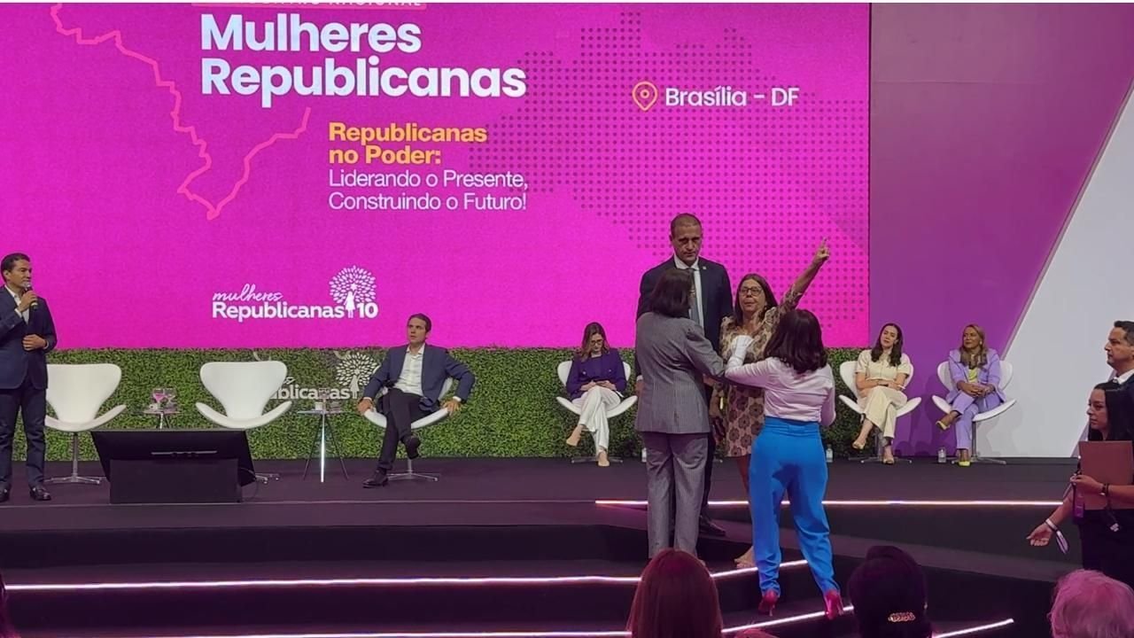 Após o fim da abertura do evento, voltado para lideranças femininas do partido, a senadora Damares Alves (Republicanos-DF) se manifestou em defesa de Hugo Motta e do presidente nacional da legenda, Marcos Pereira (SP).