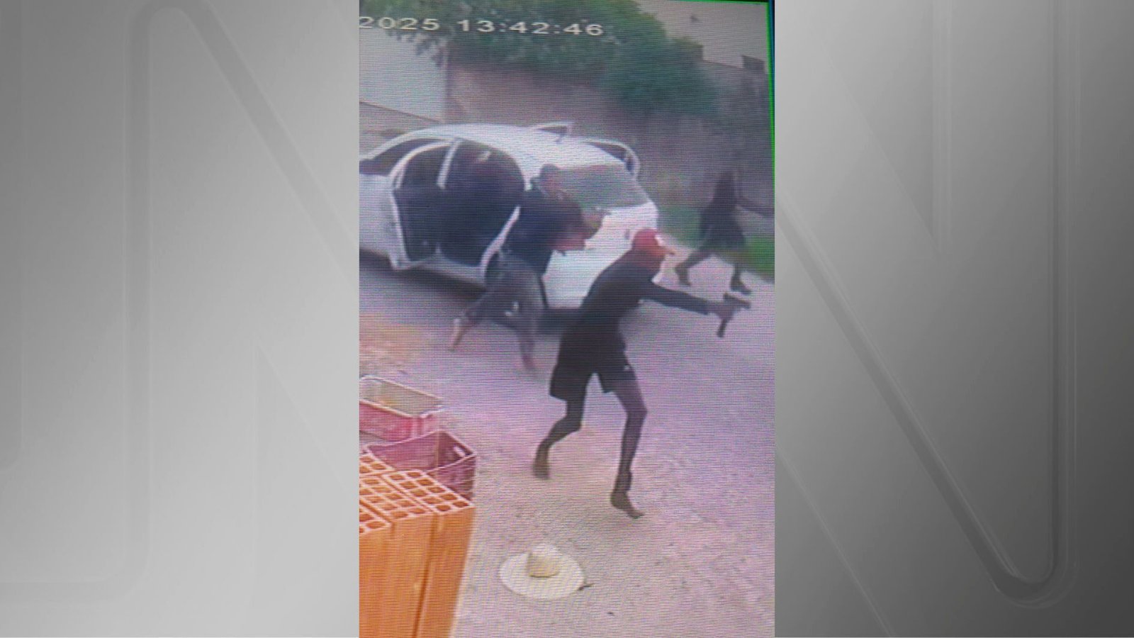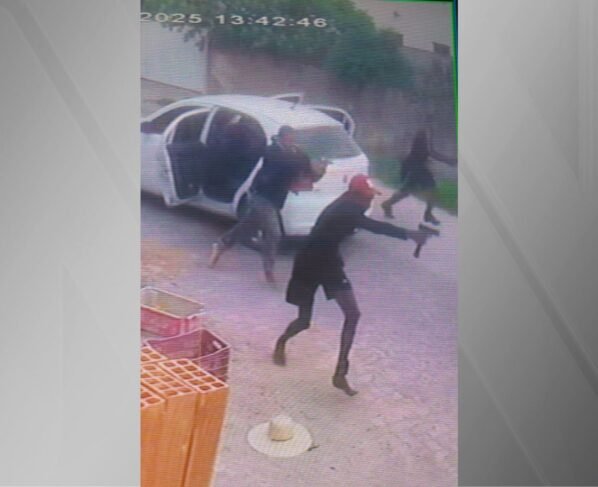 Câmeras de monitoramento da rua registraram a ação dos criminosos, que chegaram em um carro branco e atacaram a vítima, que estava caminhando em plena luz do dia. Segundo a polícia, o ataque ocorreu por volta das 13h40.